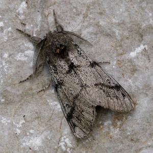 | Kurzbeschreibung | Graubraune Puschelmotte mit langen Vorderbeinen |