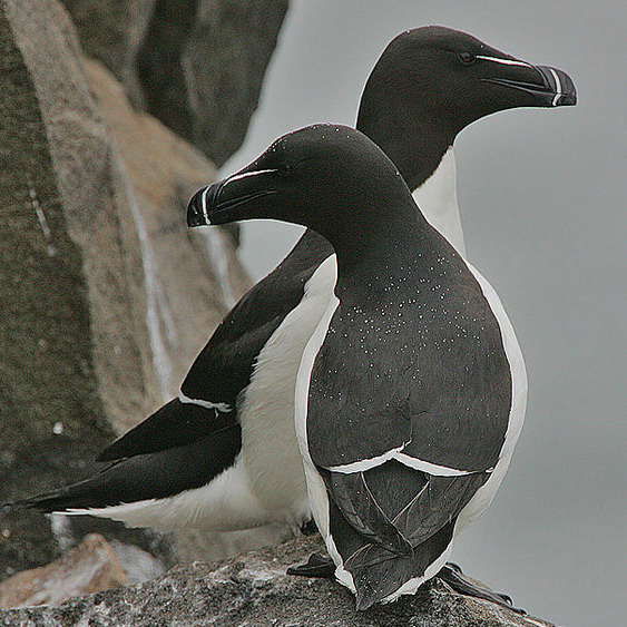 Schnabel klobig mit weißen Linien, 12 Schwanzfedern