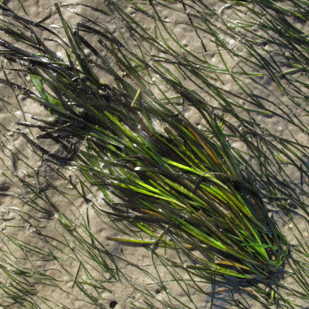 Blätter 3 - 10 mm breit, unten heller grün, in Seewasser