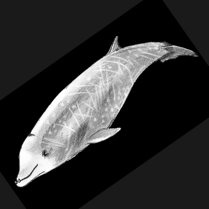 Kurzer Schnabel, dieser ganz weiß, Rückenmitte hinter Fluke hellgrau