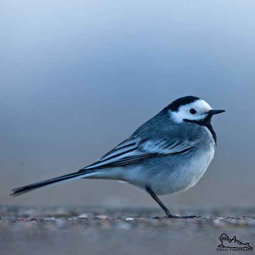 Langschwänzig, schwarz-weiß-grau, Schnabel schlank