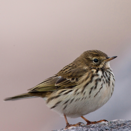 Unscheinbar braun, Brust schwach gefleckt, Beine hell