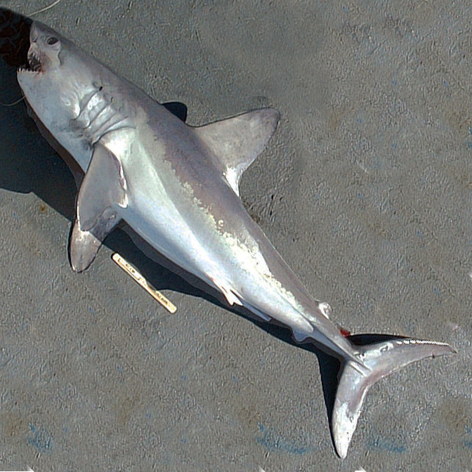 Schlank, hintere Rückenflosse klein, bis 2 m, Zähne zackig