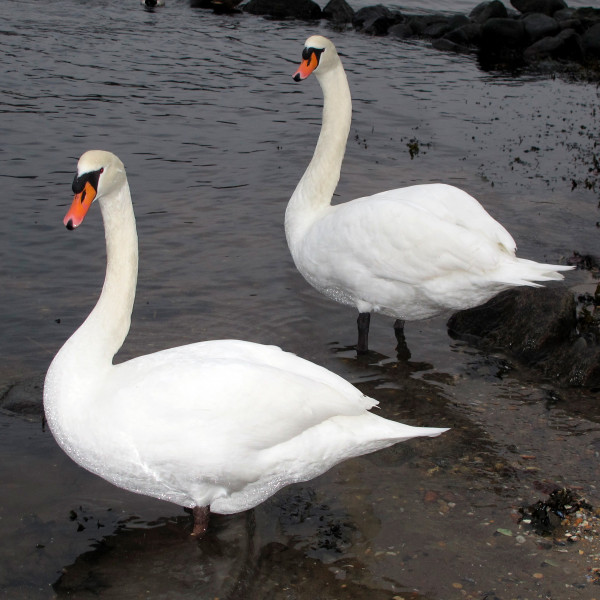 Sehr groß und langhalsig, einfarbig weiß oder hellgrau