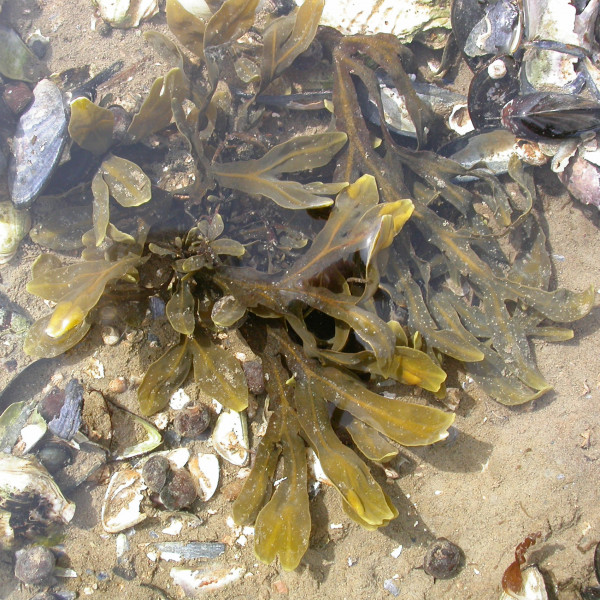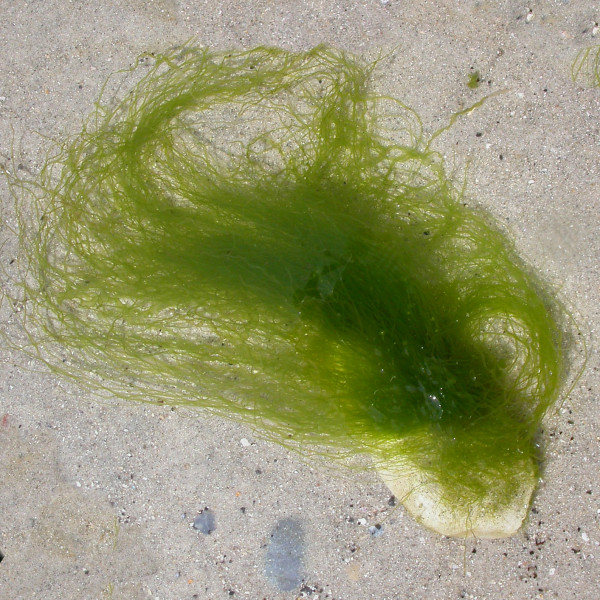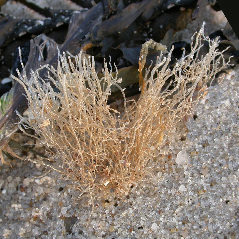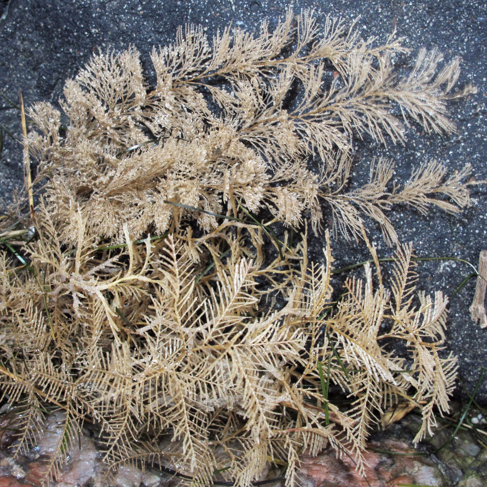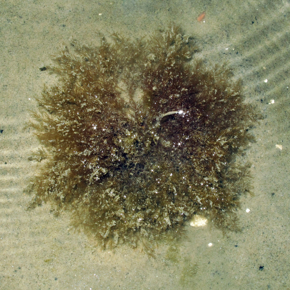 Dunkelbraune fädige Algenbüsche, klein oder groß