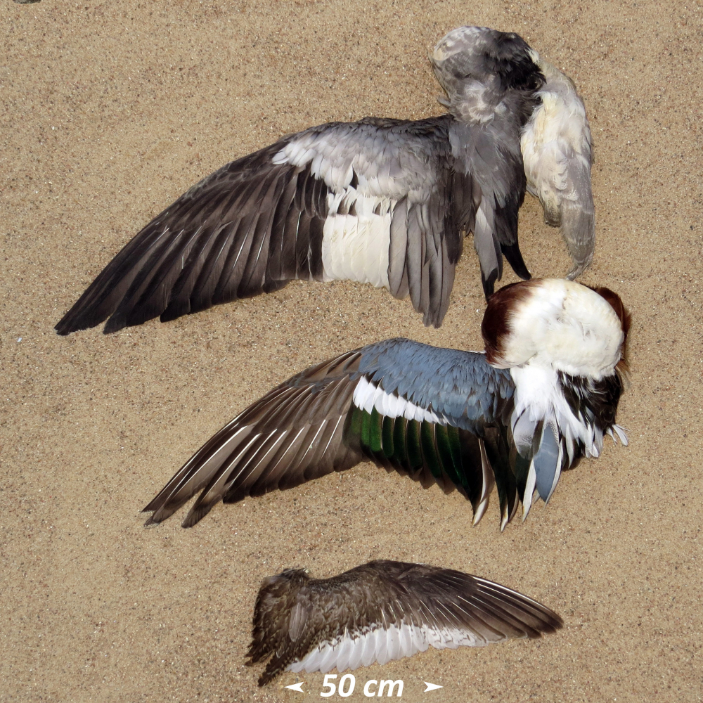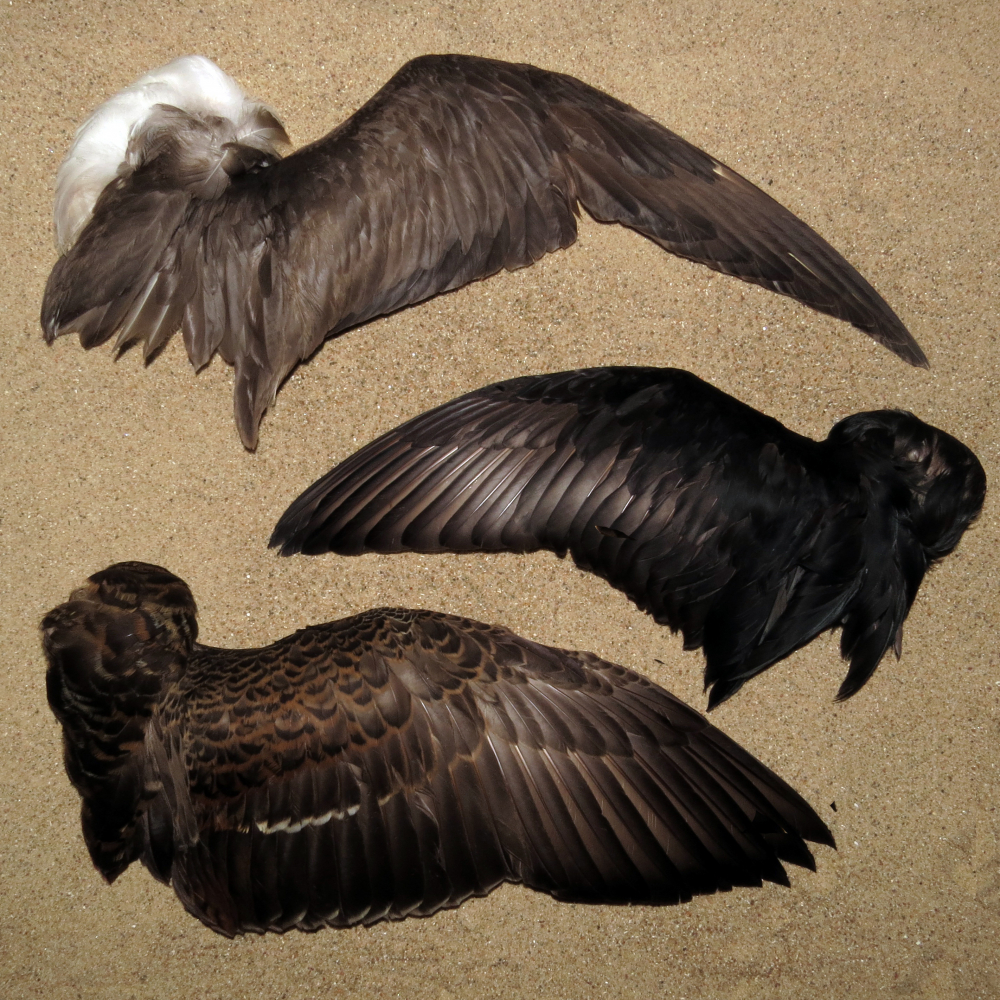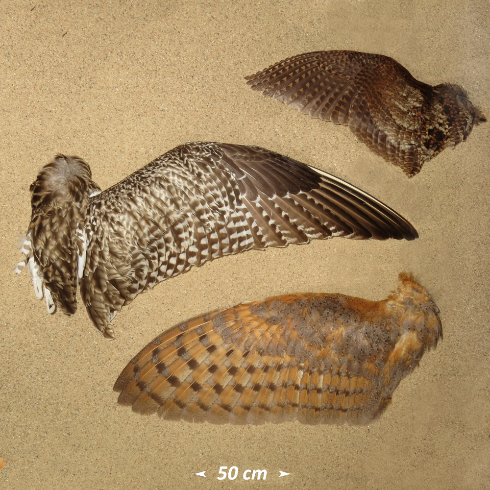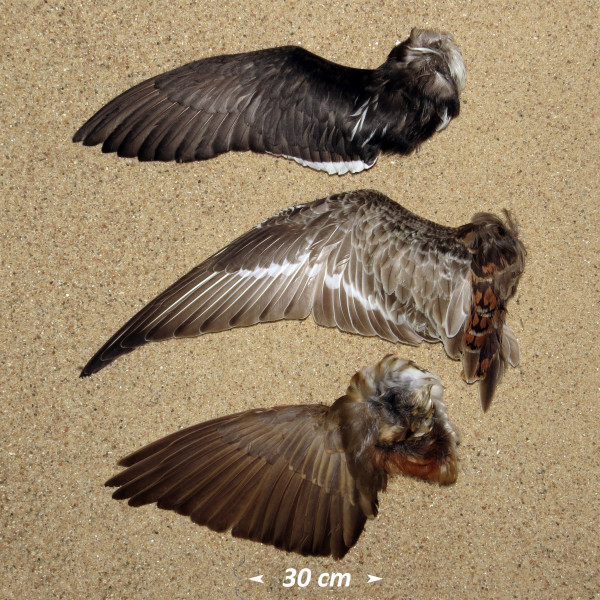 Flügel klein, bis 20 cm, äußerste Federfahne bis 10 cm