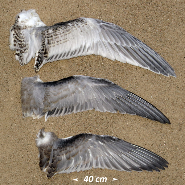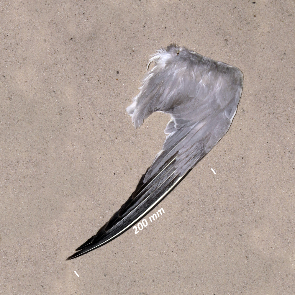 Äußerste Fahne ca 25 cm, einheitlich mittelgrau
