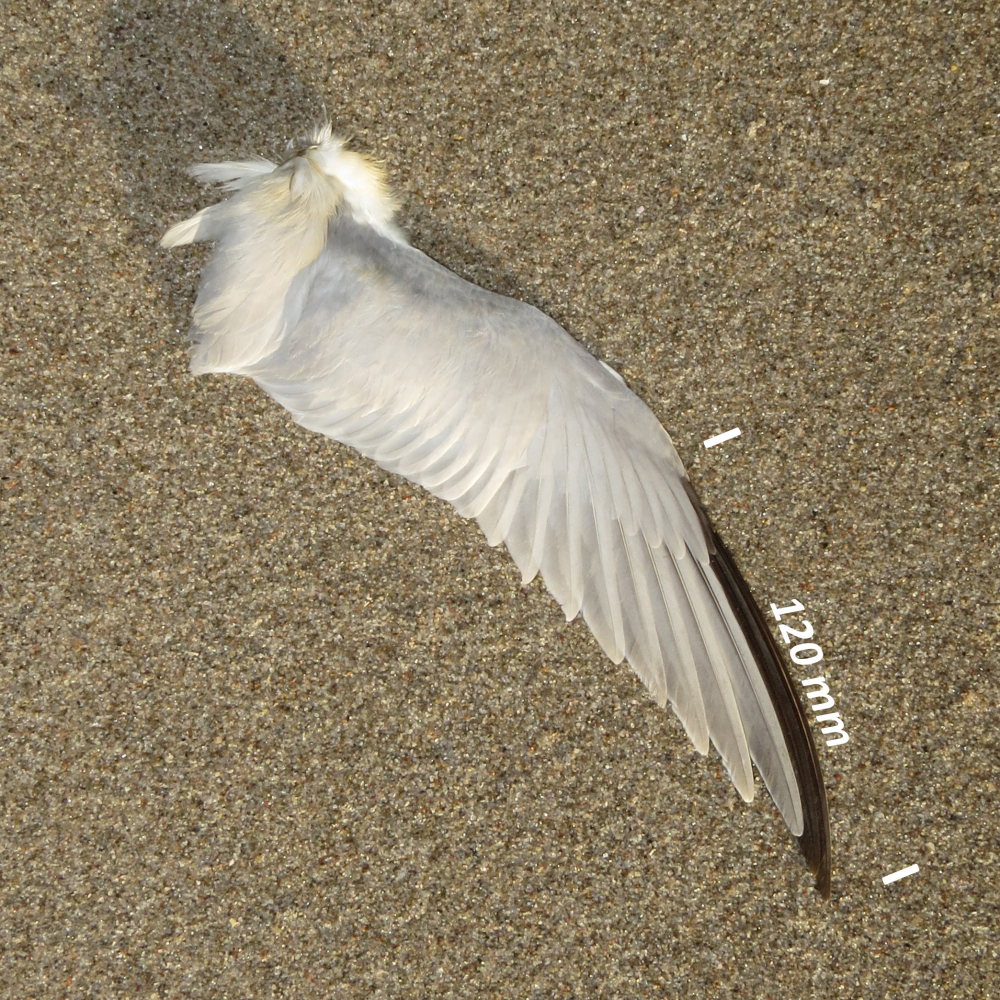 Außenkante der beiden längsten Handschwingen schwarz, äußerste Fahne 12 cm