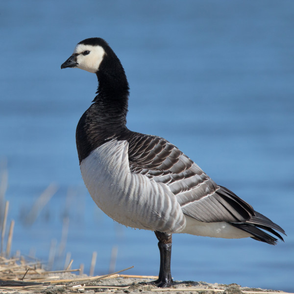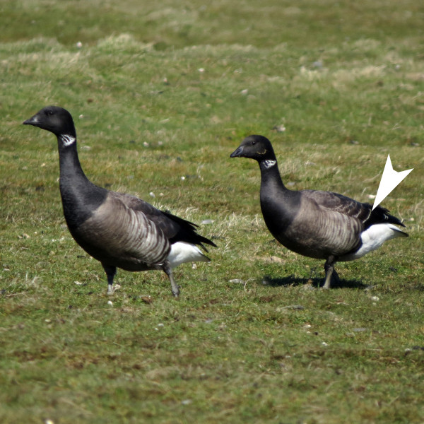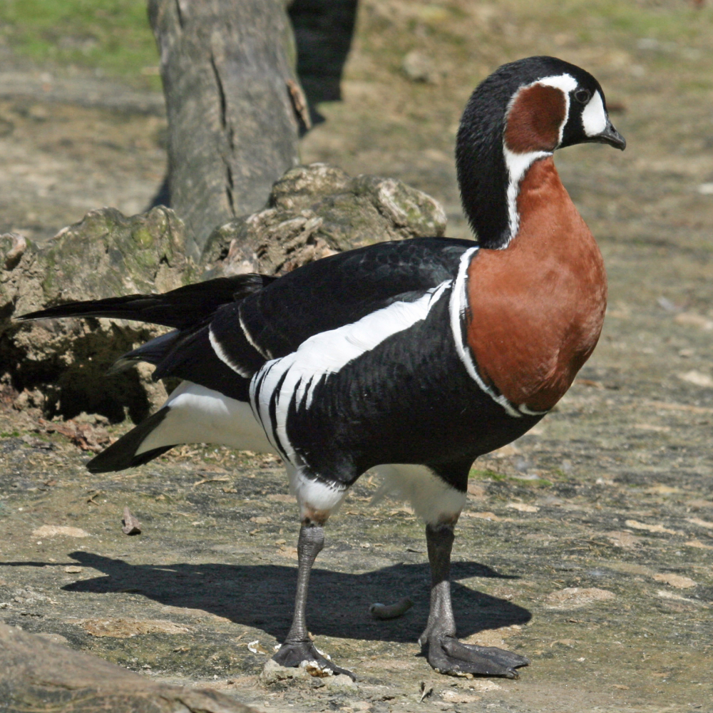 Sehr groß, Körper braun, Hals schwarz, Wangen weiß