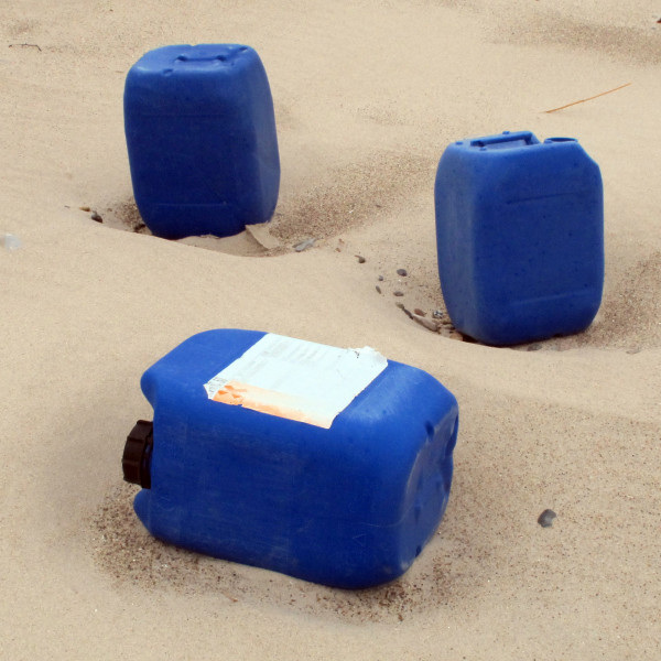 Große Plastikeimer, Deckel oft mit Pumpspender