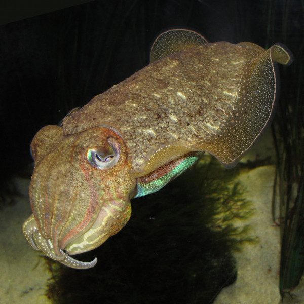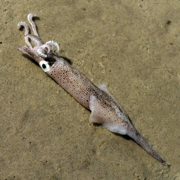 Oval abgeflachter Körper mit Flossensaum, 10 Arme