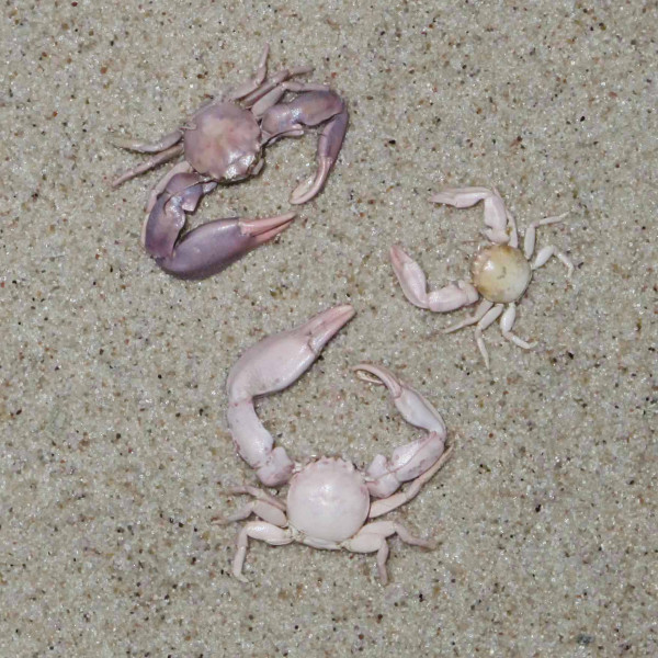 Panzer rund, flach, unter 1 cm, Scheren sehr groß