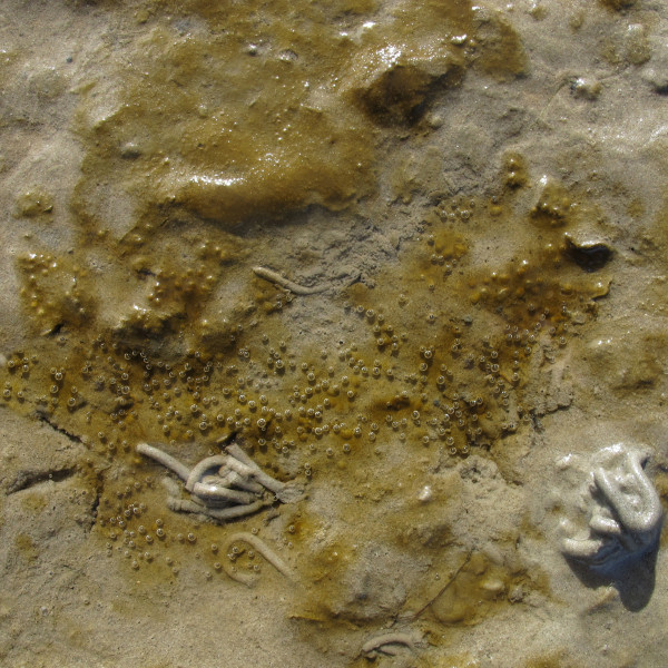 Weiche, teils glasige Krusten, oft mit Lochmuster