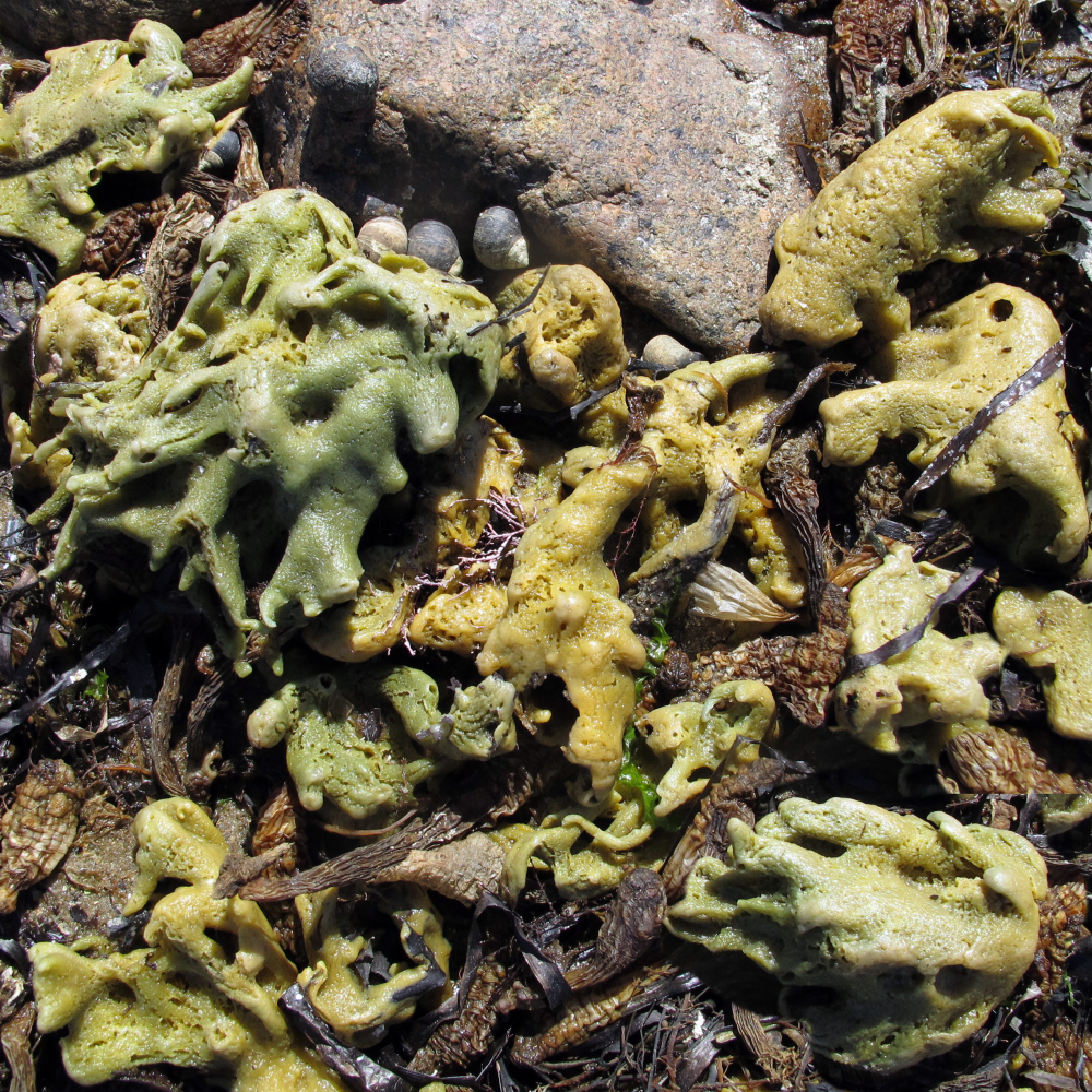 Gelblich bis braun, feinporig, maritim riechend