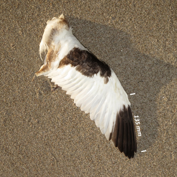 Handflügel schwarz, Armflügel weiß, Flügellänge 70 cm
