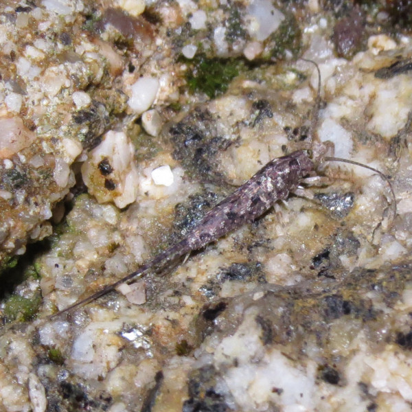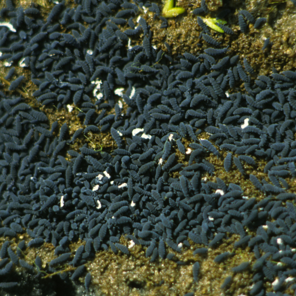 Winzig, blauschwarz, behaart, auf Salzwasser
