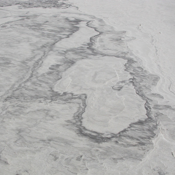Brauner Film auf Wattboden, teils glitschig, ablösbar