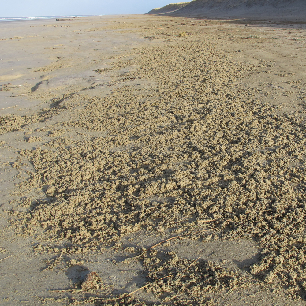 Runde, schwach farbige Flecken am Strand