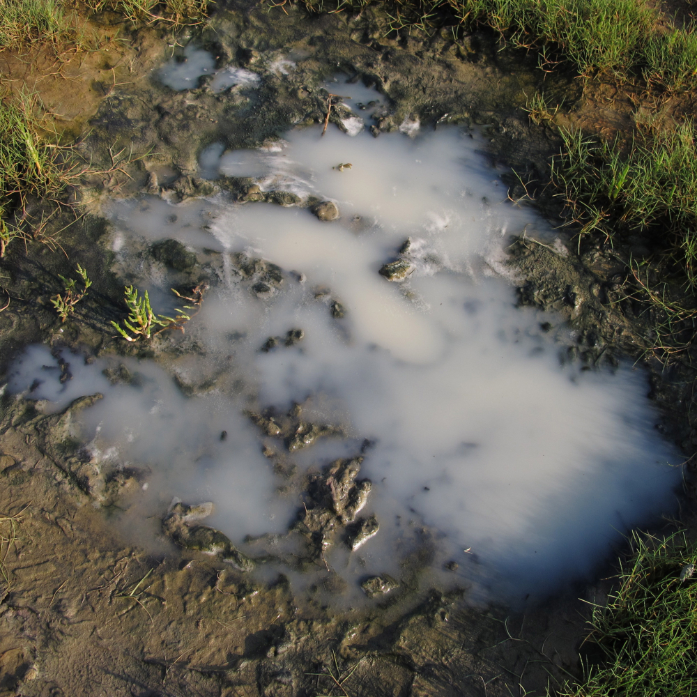 Milchige Wassertrübung über fauligem Wattboden