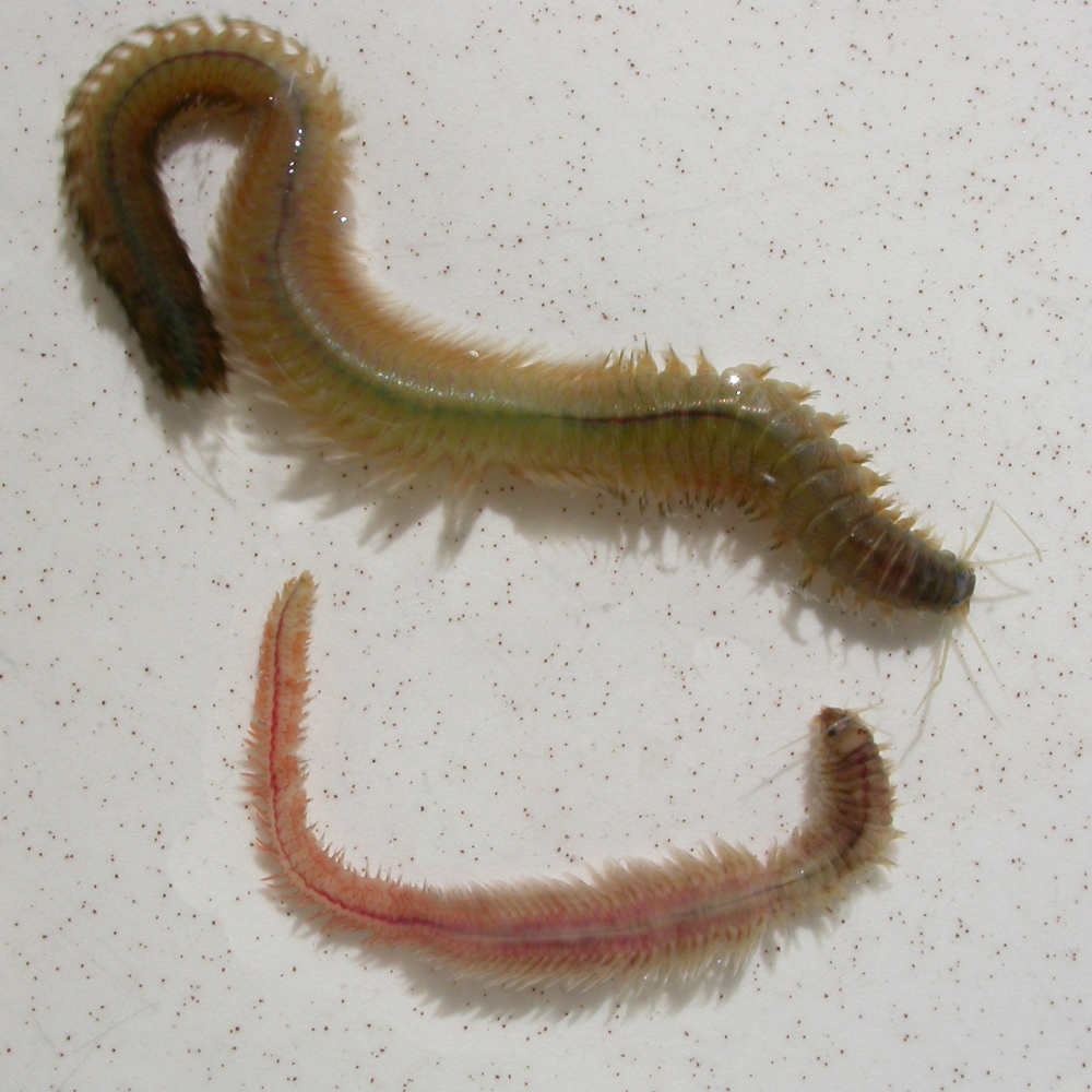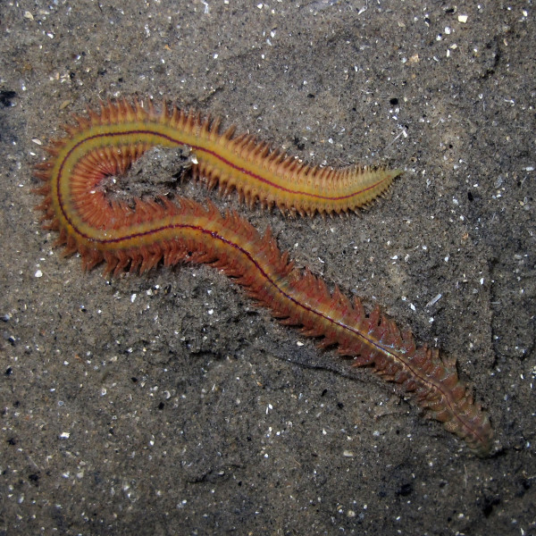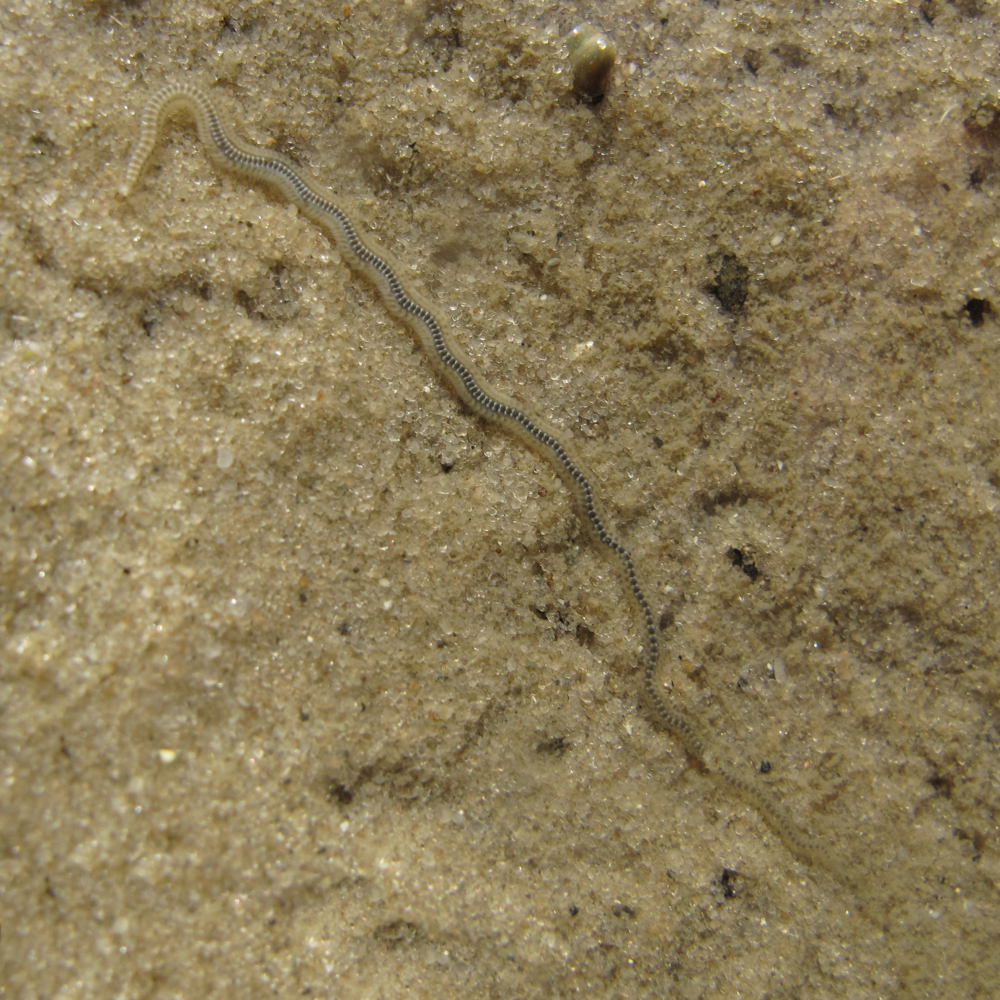 Grün, 2 Fühler, Querschnitt U-förmig, Rücken mit Kiemenfäden