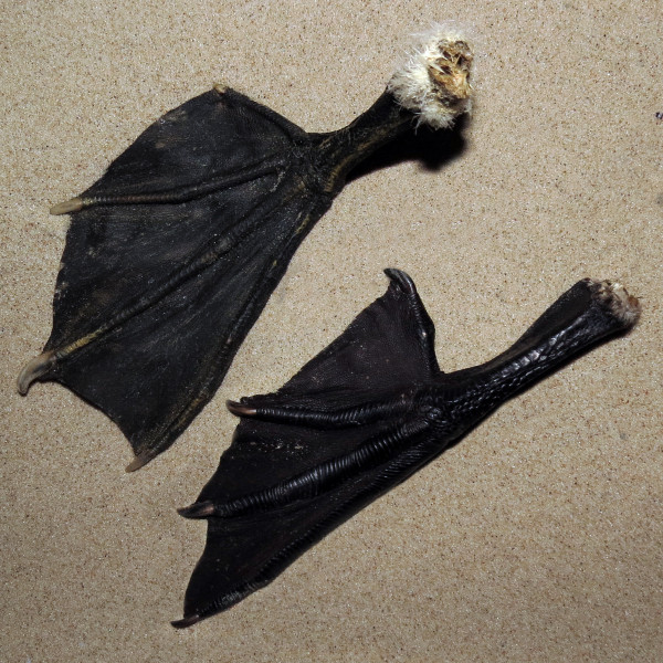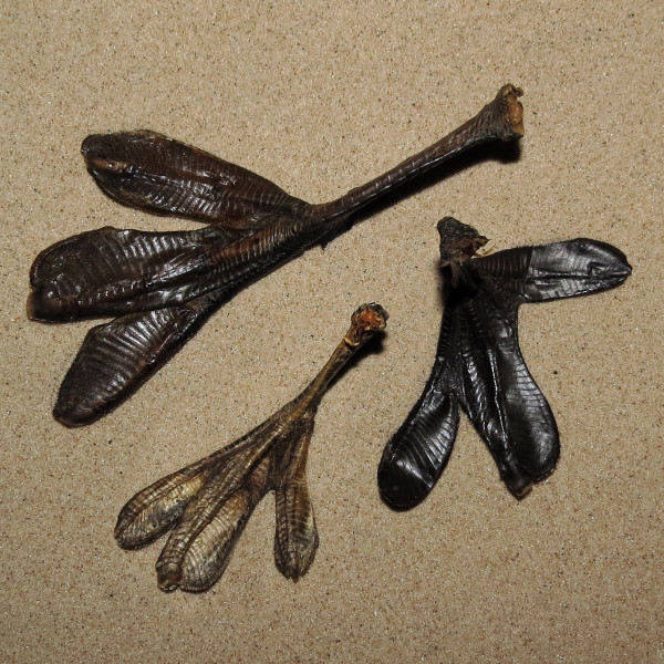 4 lange Zehen, 3 Schwimmhäute