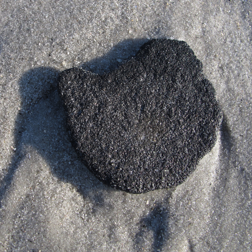 Schwarz, zäh bis hart, nach Tankstelle riechend