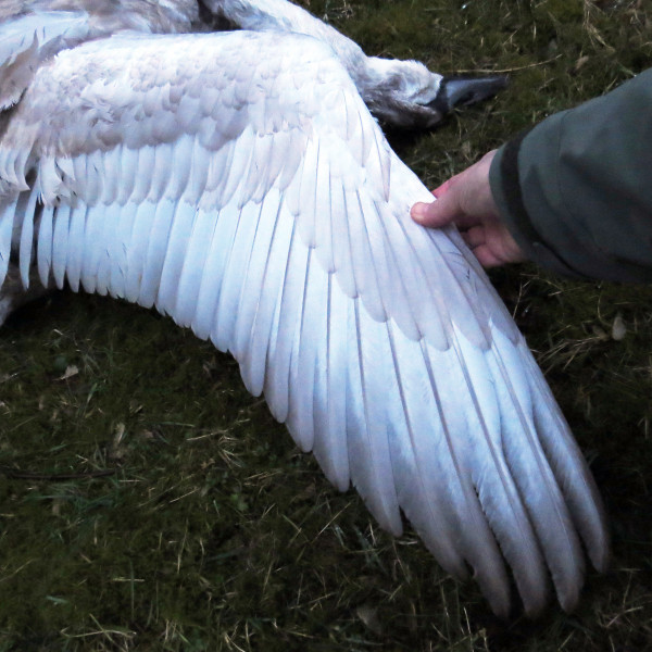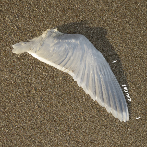 Flügellänge etwa 30 cm, spitz, ganz weiß