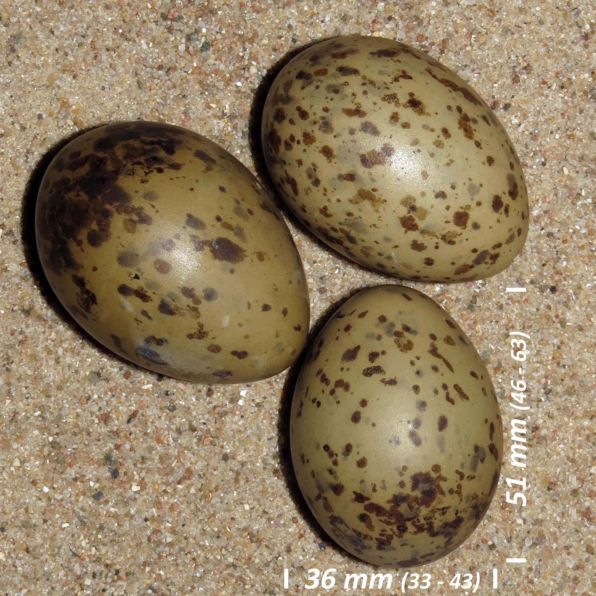 | Kort beskrivelse | Small roundish gull eggs, usually loudly defended |