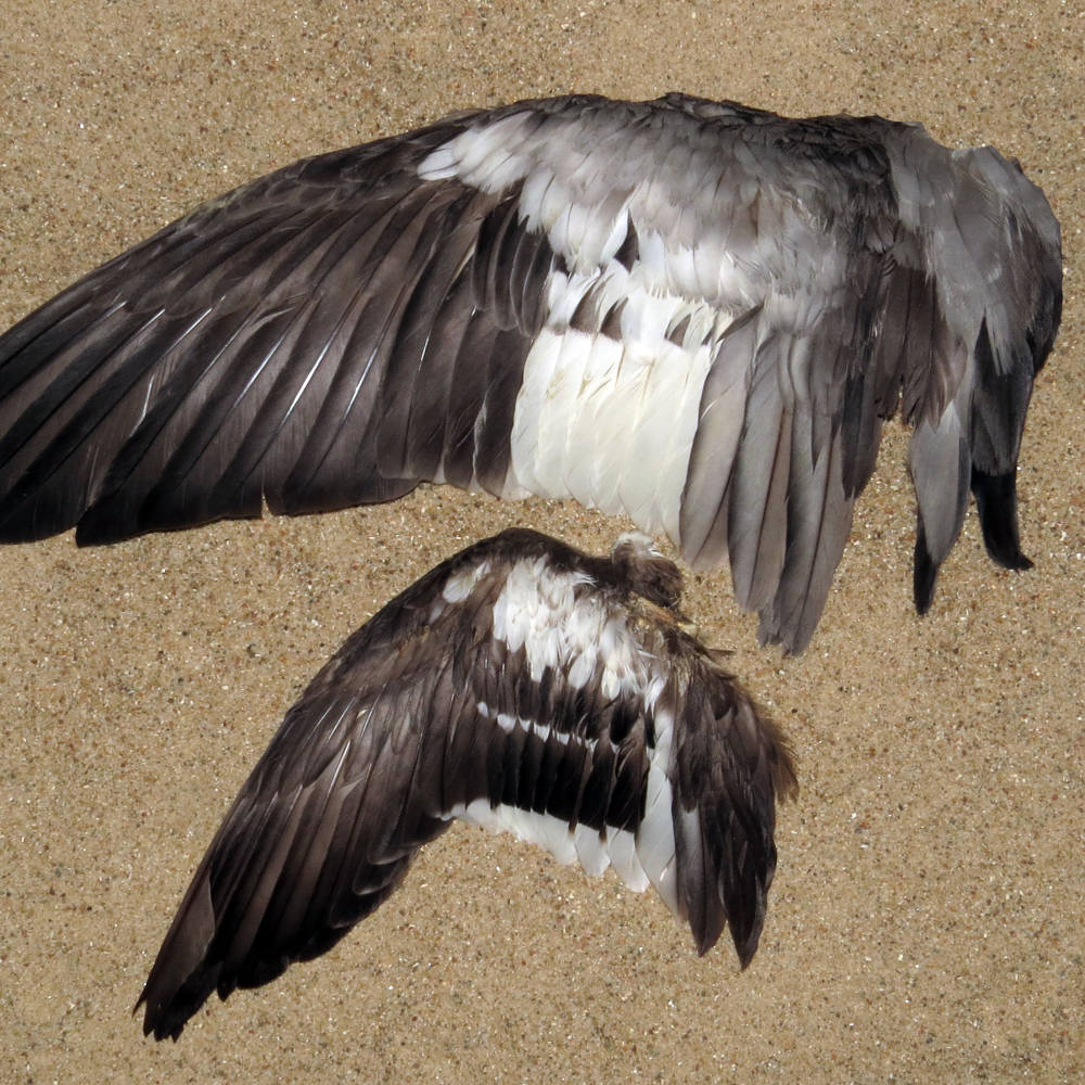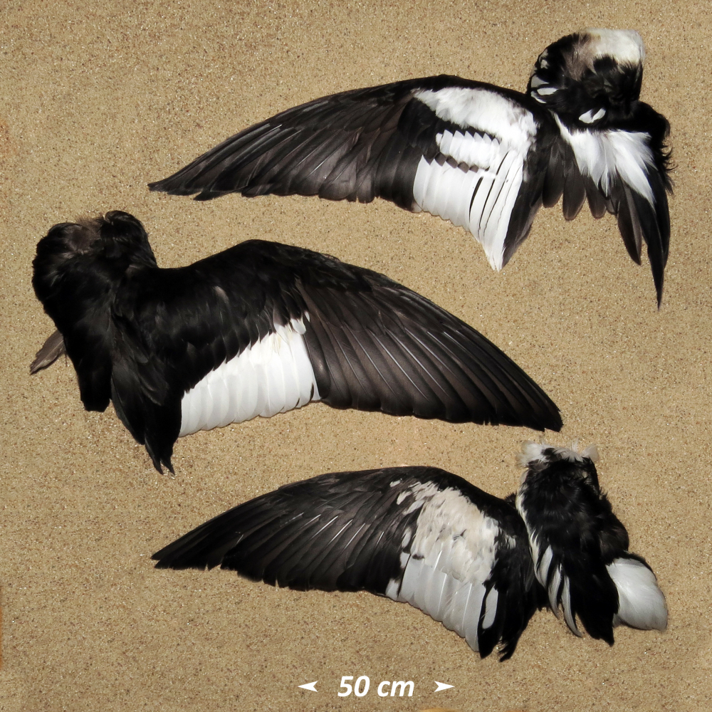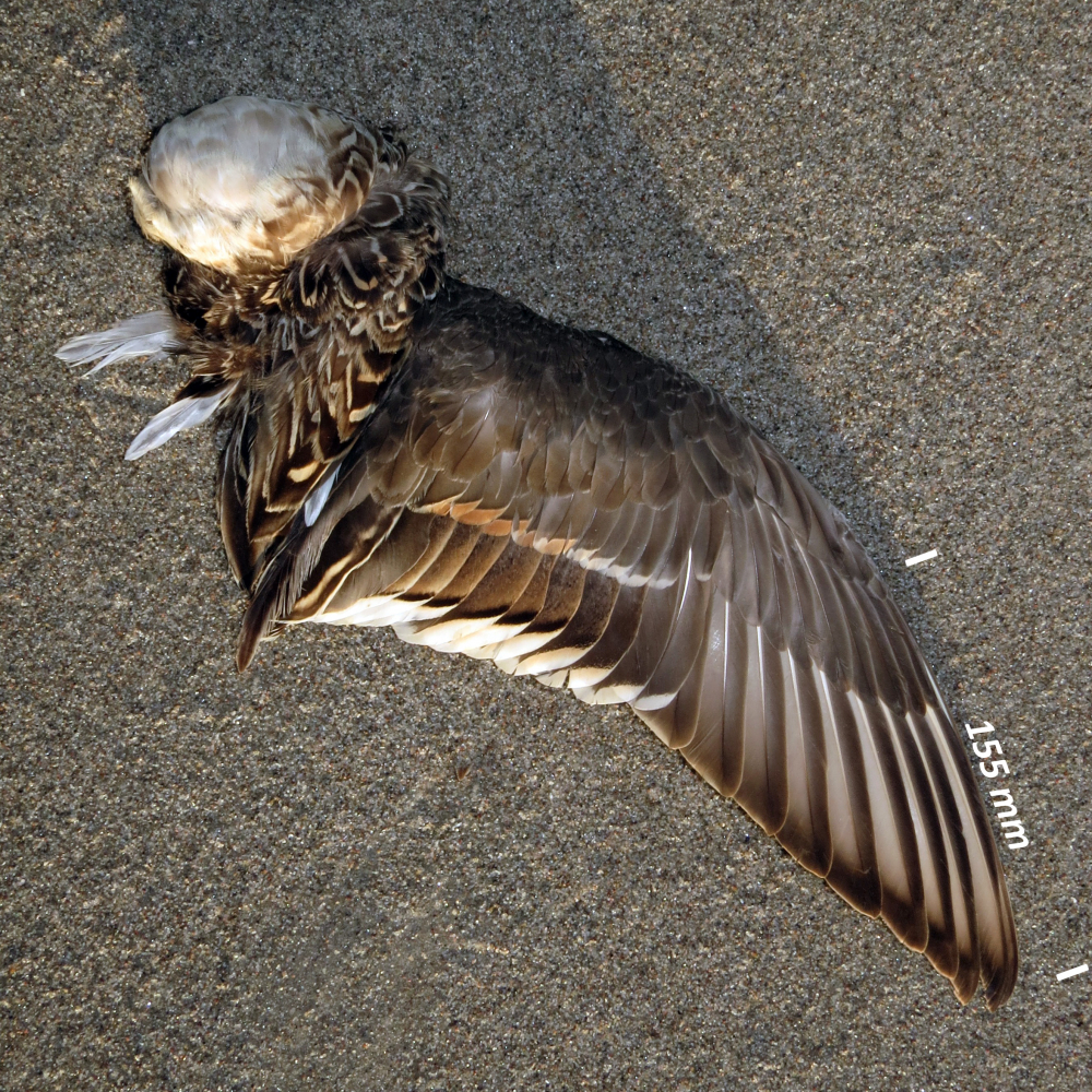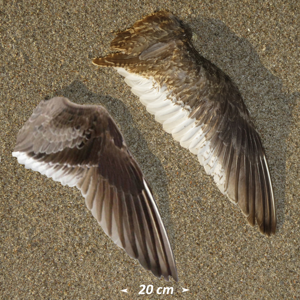 Armschwinge mit weißer Endbinde, Innnehälften der Armschwingen dunkel