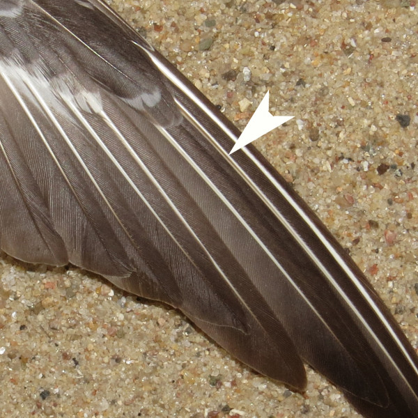 Kiele der beiden vorletzten Handschwingen mit dunkler Längslinie