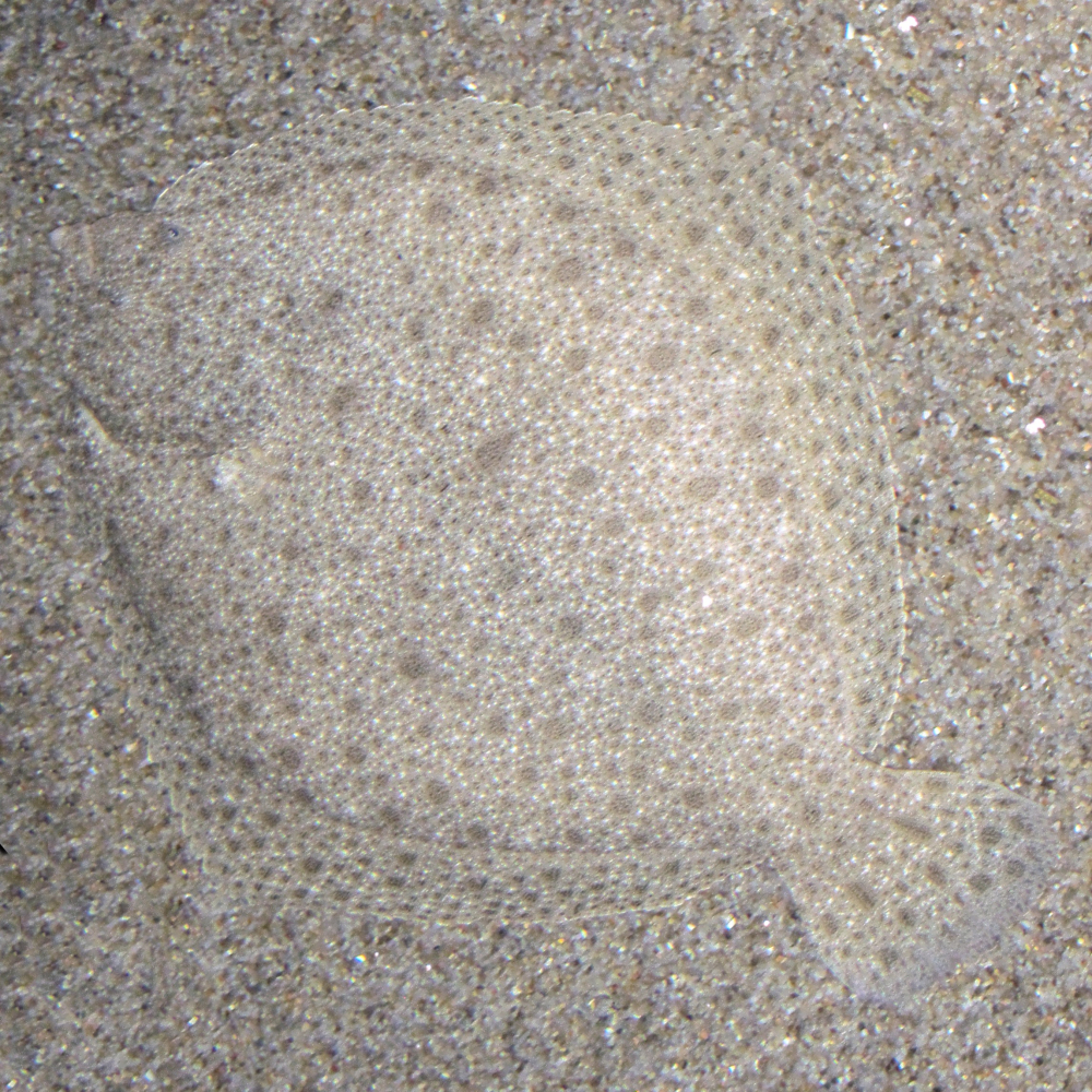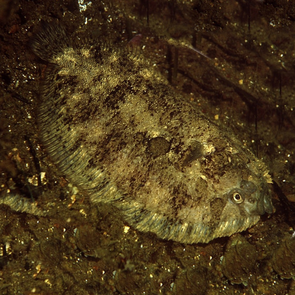 Breit elliptisch, Kopf kurz mit langen Hautfransen