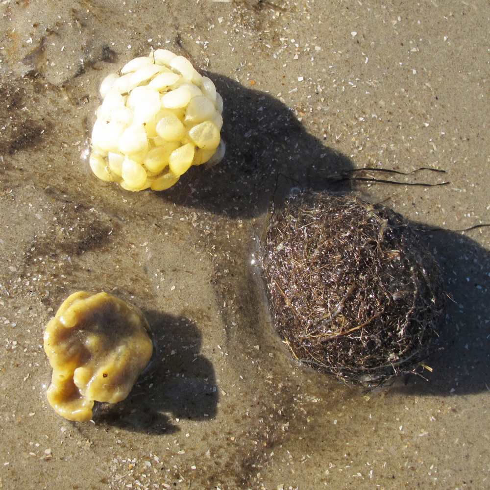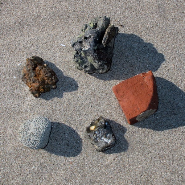 uit aan elkaar gekit zand bestaande klonten, ballen, banden
