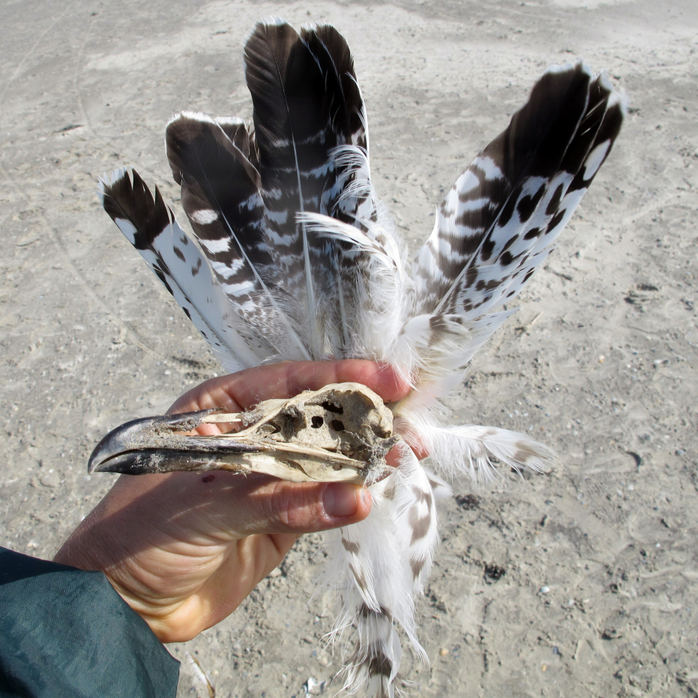 2 poten en vleugels, veren, snavel