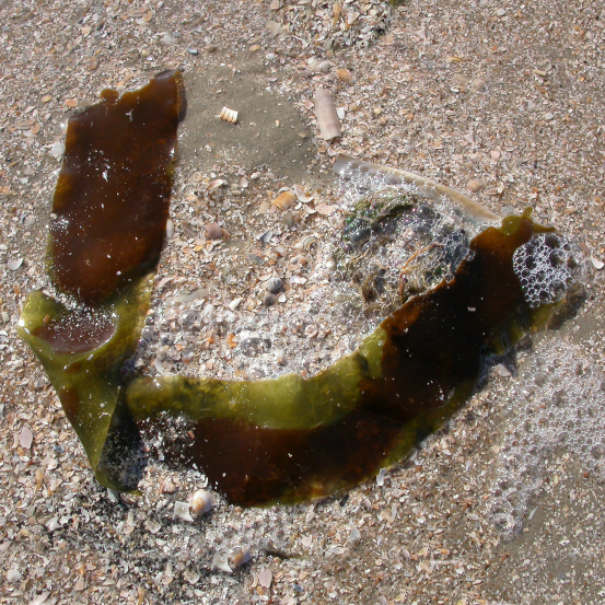 Afgescheurde kelpdelen