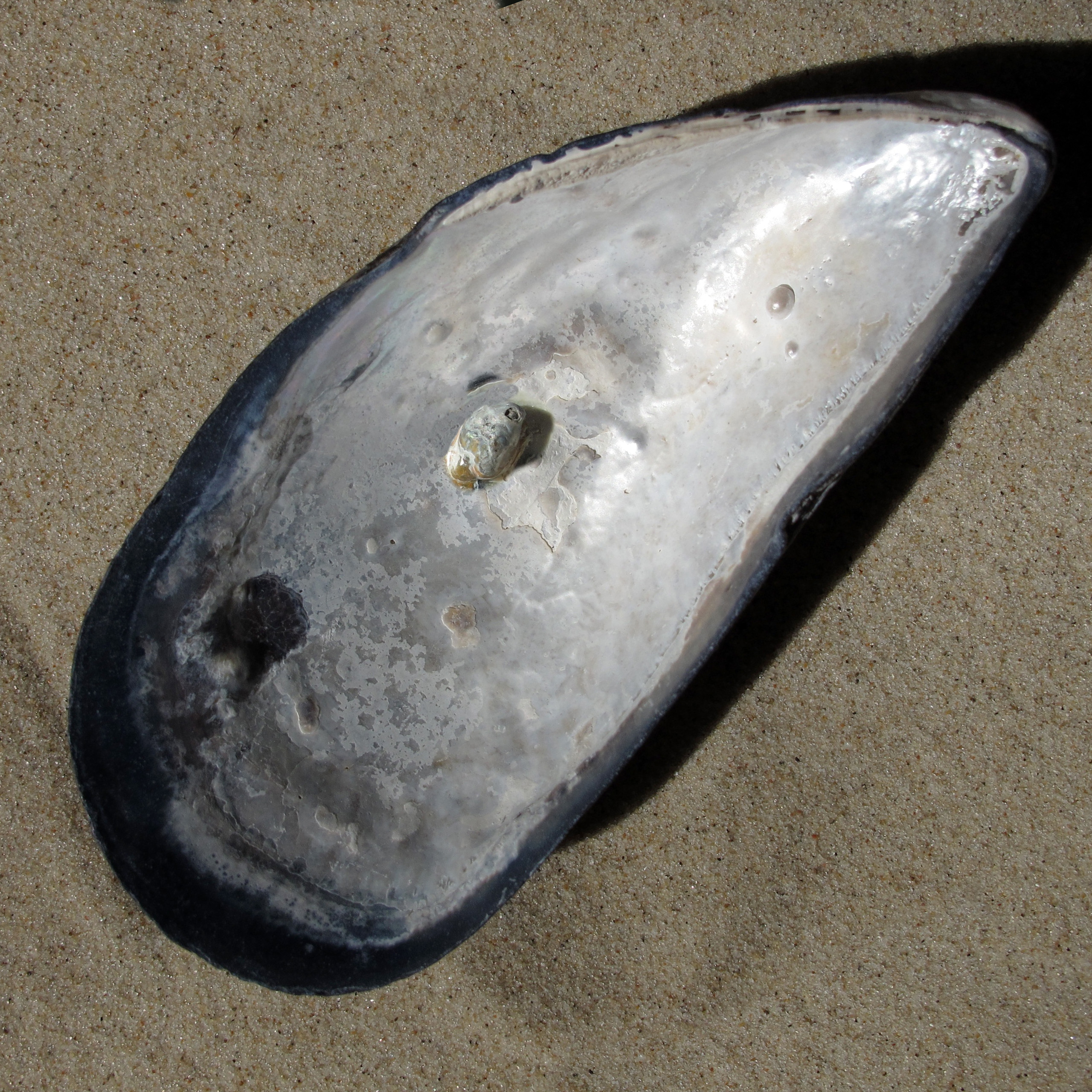 Deel van Uiteinde graafgang van slikkokerworm (Polydora ciliata (erosion))